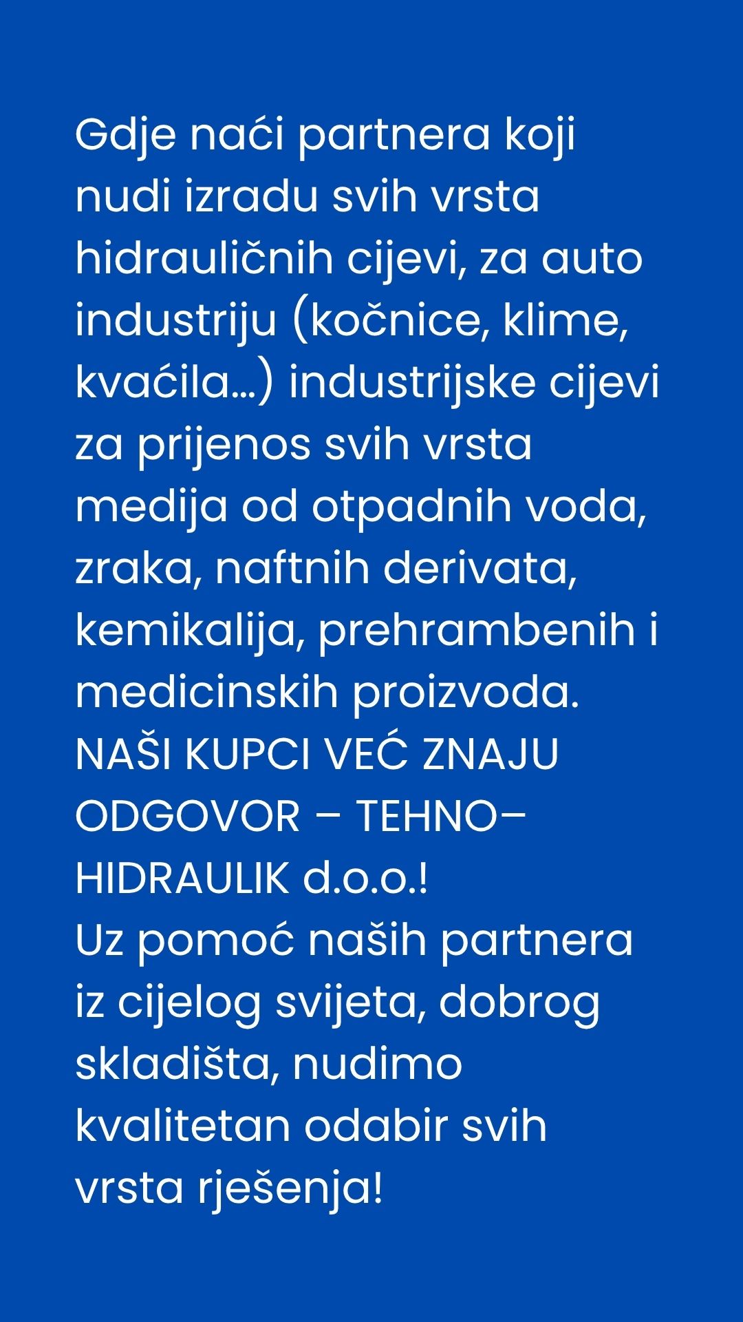 Stručno savjetovanje – Vi pitate, mi rješavamo01Saznajte više Sve cijevi na jednom mjestu – brzo i pouzdano02Saznajte više 28 godina kvalitete kojoj vjeruju svi sektori03Saznajte više Izrada unutar 24h – čak i izvanserijski proizvodi04Saznajte više Kvaliteta po cijeni koja ima smisla05Saznajte više Globalna mreža partnera, lokalna pouzdanost06Saznajte više